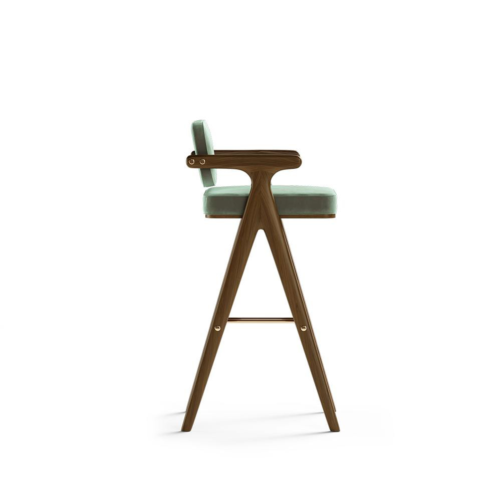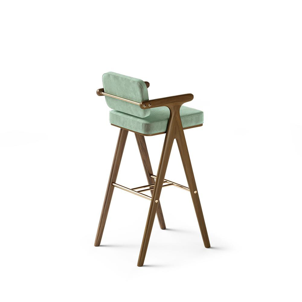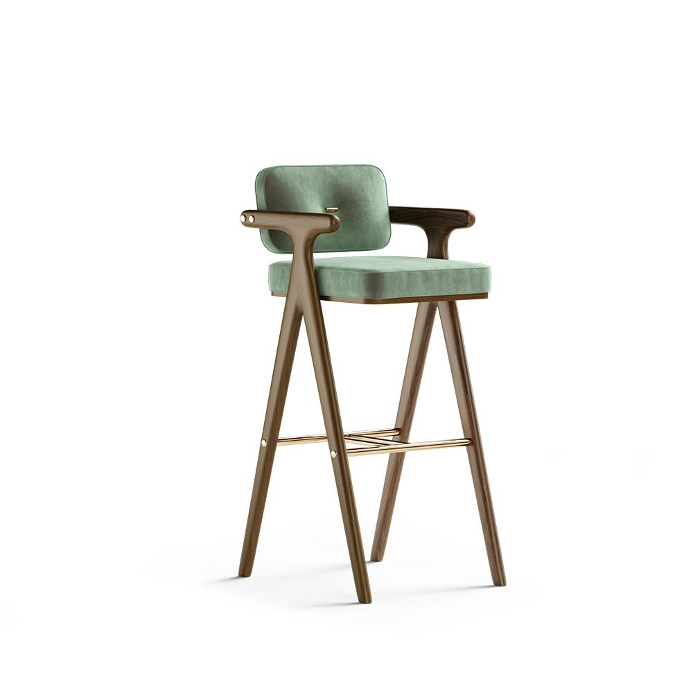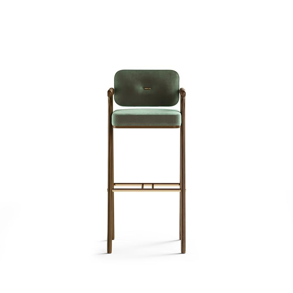 The Bernard bar chair was designed to be the centerpiece of any bar. Exhibiting a robust and firm structure made of wood and polished brass, giving a touch of luxury to the space. The back together with the side arms of this bar chair will provide long hours of comfort during late-night drinks in the bar.