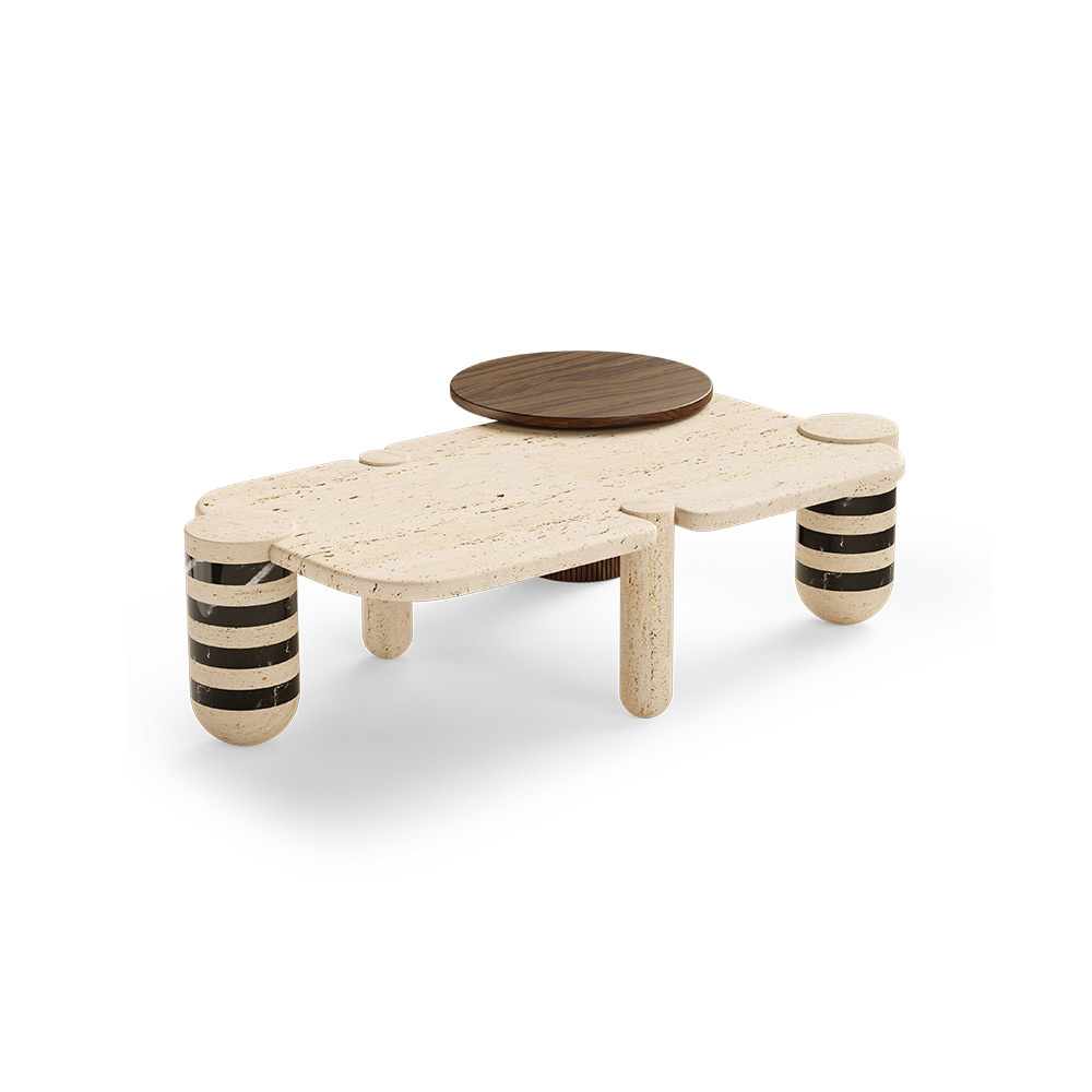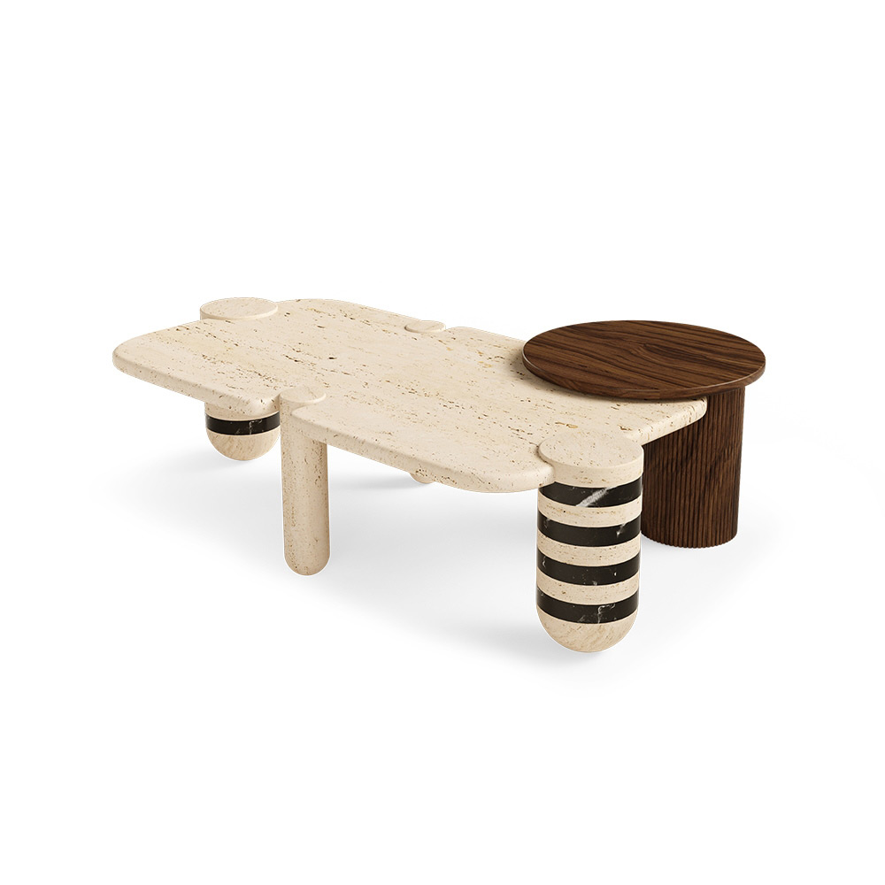 Matte Walnut Wood, Nero Marquina Marble and Travertino Marble