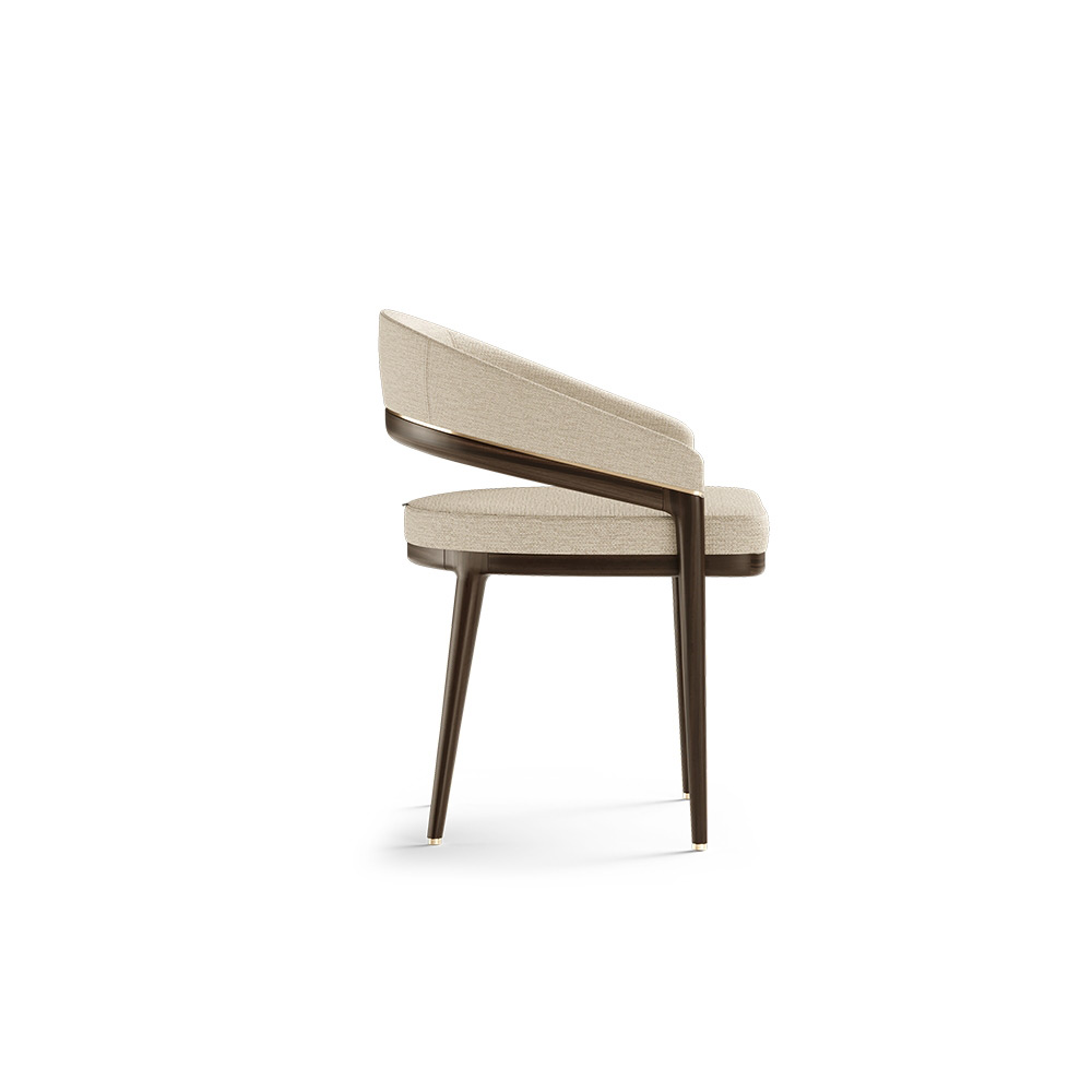 The Erick Dining Chair will provide absolute comfort due to its generous seat and rounded backrest. Beyond that, this dining chair gives the ambiance the necessary elegance, through its minimalistic brass details.