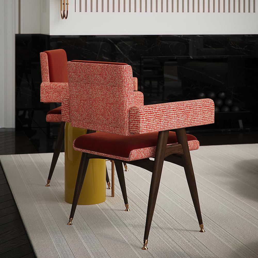 Grayson dining chair, which brings to the interiors the beauty and glamour of the Hollywood movie musicals of the 40s and 50s, will ensure that the dining room incorporates a modern mid-century element, giving the space a modern yet vintage vibe. This dining chair is the perfect fit for glamorous luxury designs.