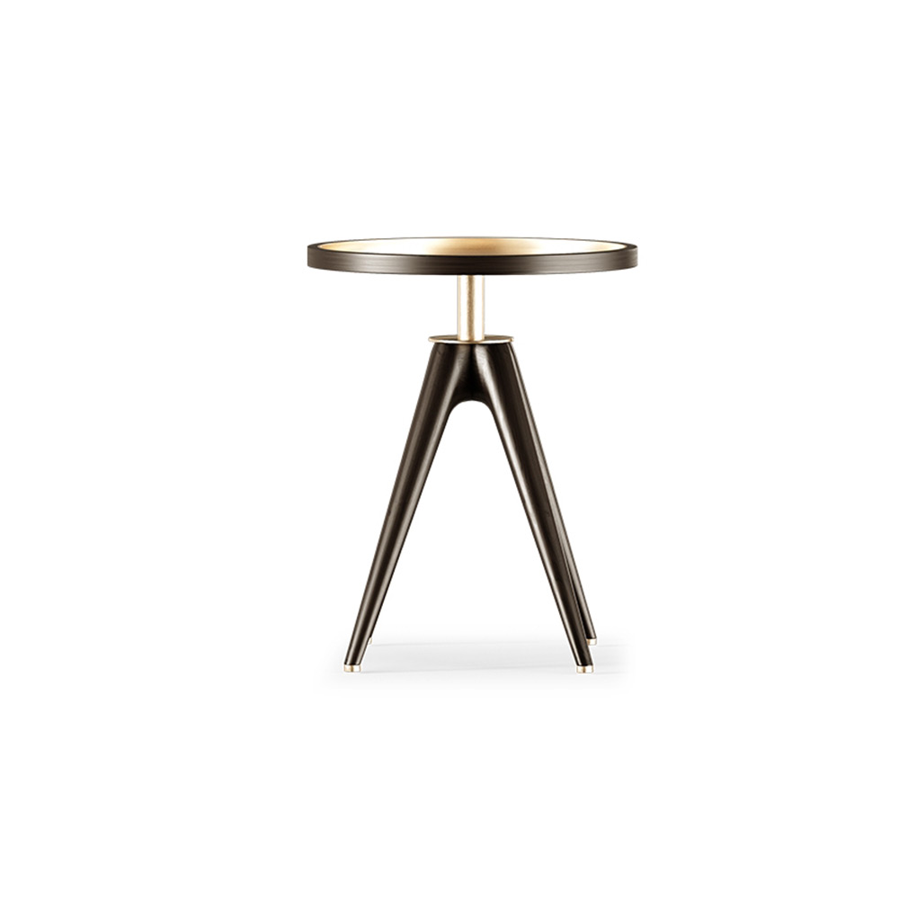 The Dorothy side table has a minimalistic yet attractive shape. The two contrasting elements – brass and darker wood – shape its structure, while the robust base enhances the overall design.