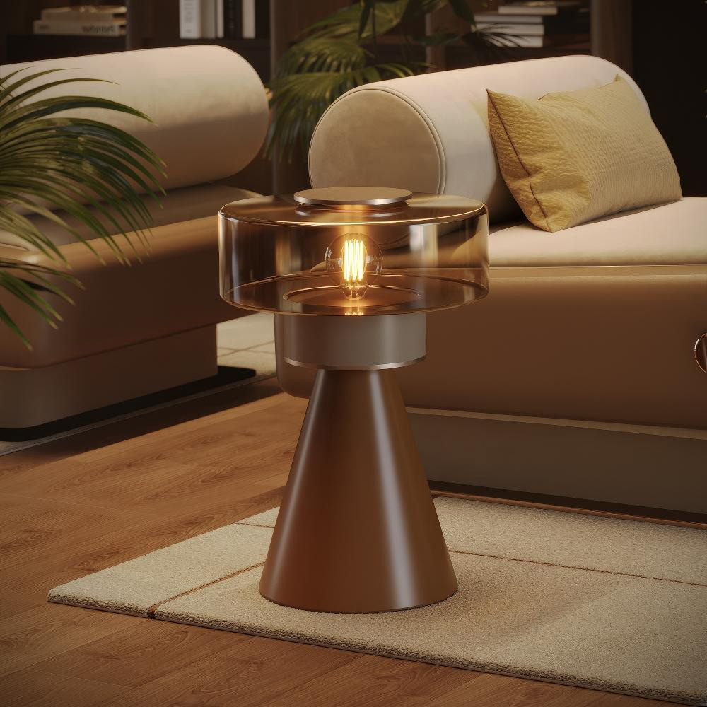 A fusion of elegance and functionality, the Irwin Side Table Lamp brings a refined mid-century aesthetic to any space. The top, crafted from smoked glass with a built-in lighting feature, creates an inviting ambiance while adding a modern twist to its vintage inspiration. The interplay of materials enhances its sculptural presence, making it a statement piece for living rooms, lounges, or bedside settings, embodying the timeless elegance and innovation of mid-century modern style.